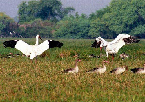 One of the finest bird parks in the world, Bharatpur Bird Sanctuary also known as Keoladeo Ghana National Park is a reserve that offers protection to faunal species as well. Keoladeo, the name derives from an ancient Hindu temple, devoted to Lord Shiva, which stands at the centre of the park. 'Ghana' means dense, referring to the thick forest, which used to cover the area. Nesting indigenous water- birds as well as migratory water birds and waterside birds, this sanctuary is also inhabited by Sambar, Chital, Nilgai and Boar.