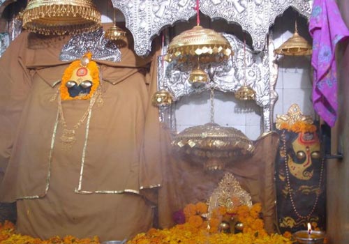 Idol of mataji in the temple is believed so sacred that it is completely hidden under a red cloth. Here Lord shiva is present in the form of death, destruction & dead bodies along with Devi Chamunda. On either side of the Devi's image is Hanuman and Bhairo baba. According to legends it is thought to be sacred to take a bath in Ban Ganga. People offer prayers, worship and give offerings for their ancestors.